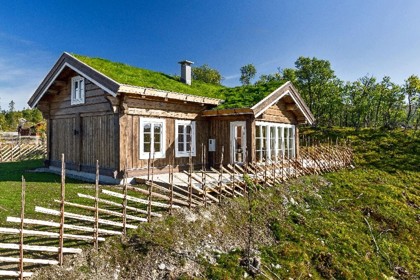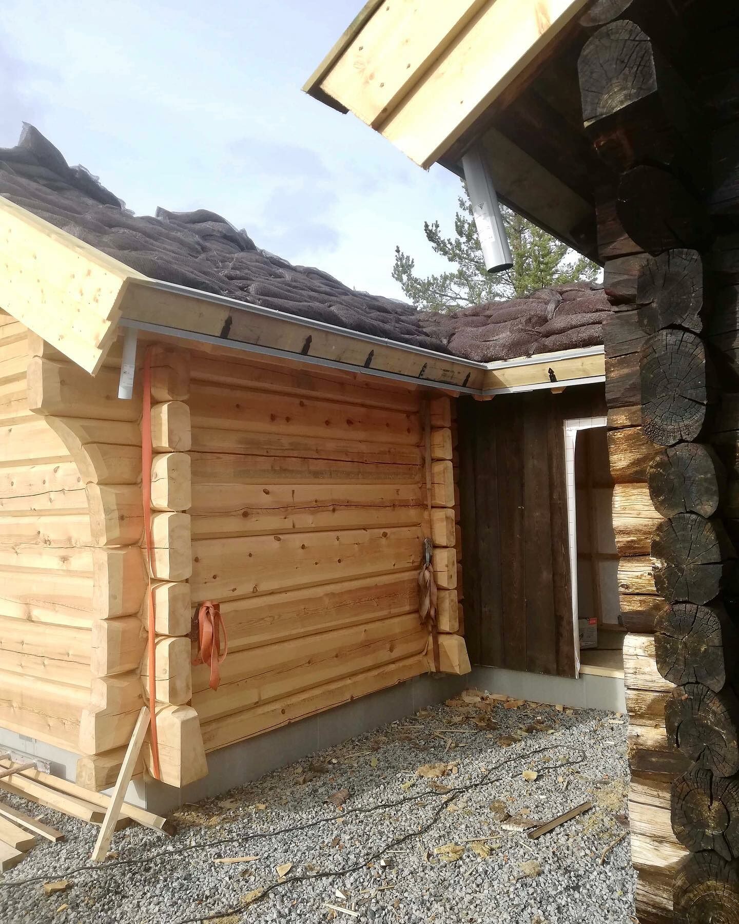 Tunge tak, torvtak eller steintak er nødvendig for at lafte kassa skal sette seg og bli tette og gode veggar.